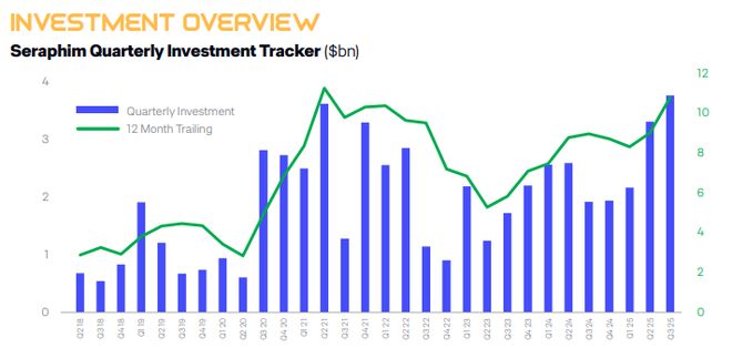 财联社10月11日讯(编辑 赵昊)周五(10月10日),太空投资公司Seraphim Space发布的报告显示,今年第三季度,全球在太空领域的总投资达到创纪录的35亿美元。