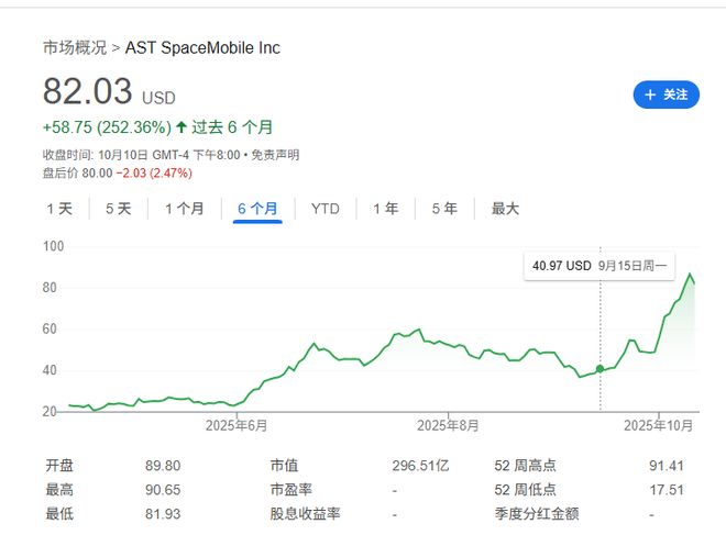 AST SpaceMobile在展示其“卫星直连手机”宽带技术后,股价更是上涨逾两倍。